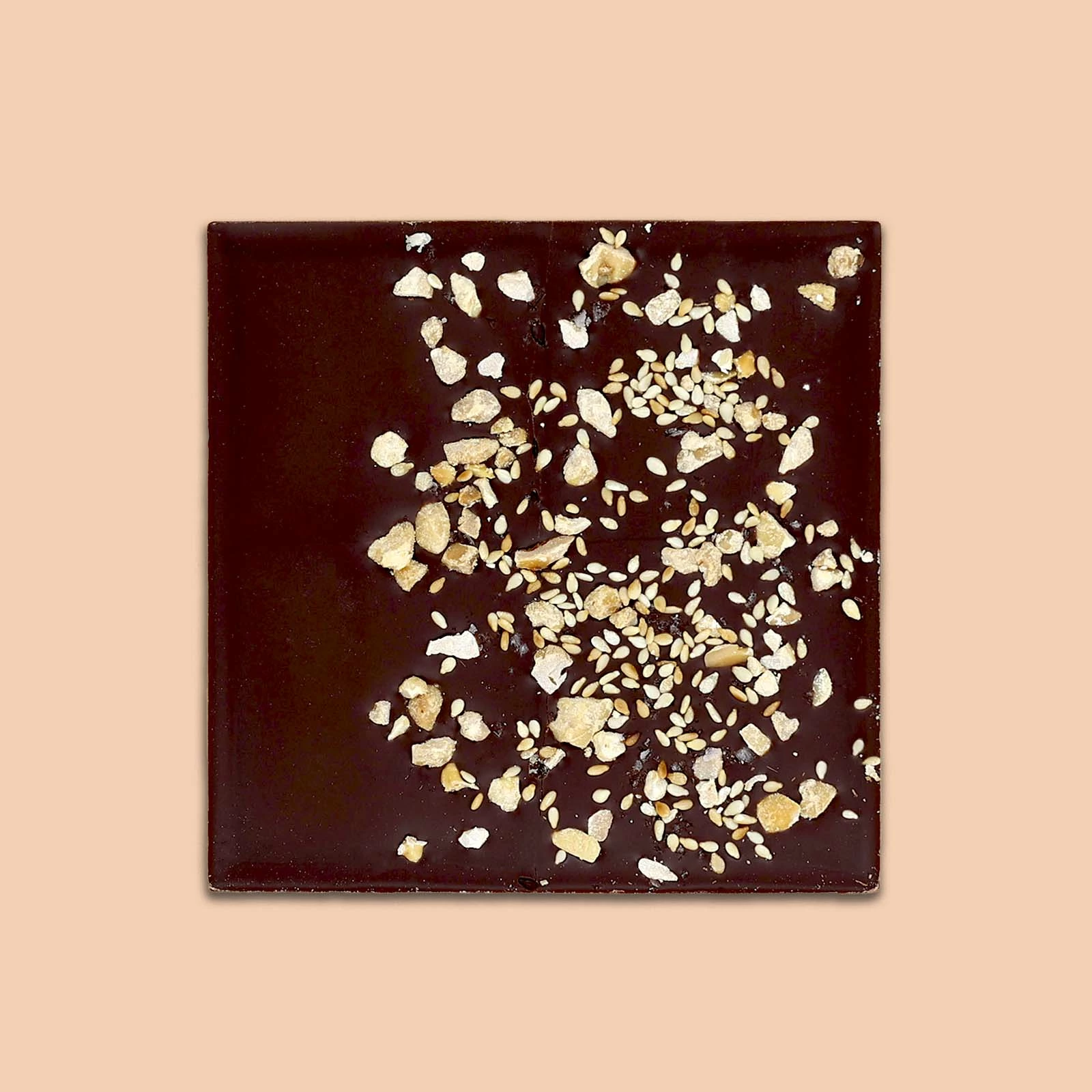 This sweet dark chocolate is cravable on its own. Add in some peanuts, toasted sesame seeds, and Maldon flake salt and you have a very devour-able chocolate bar. With classic cocoa notes and hints of caramel and molasses, this chocolate is the ideal pairing for bourbon or Scotch.