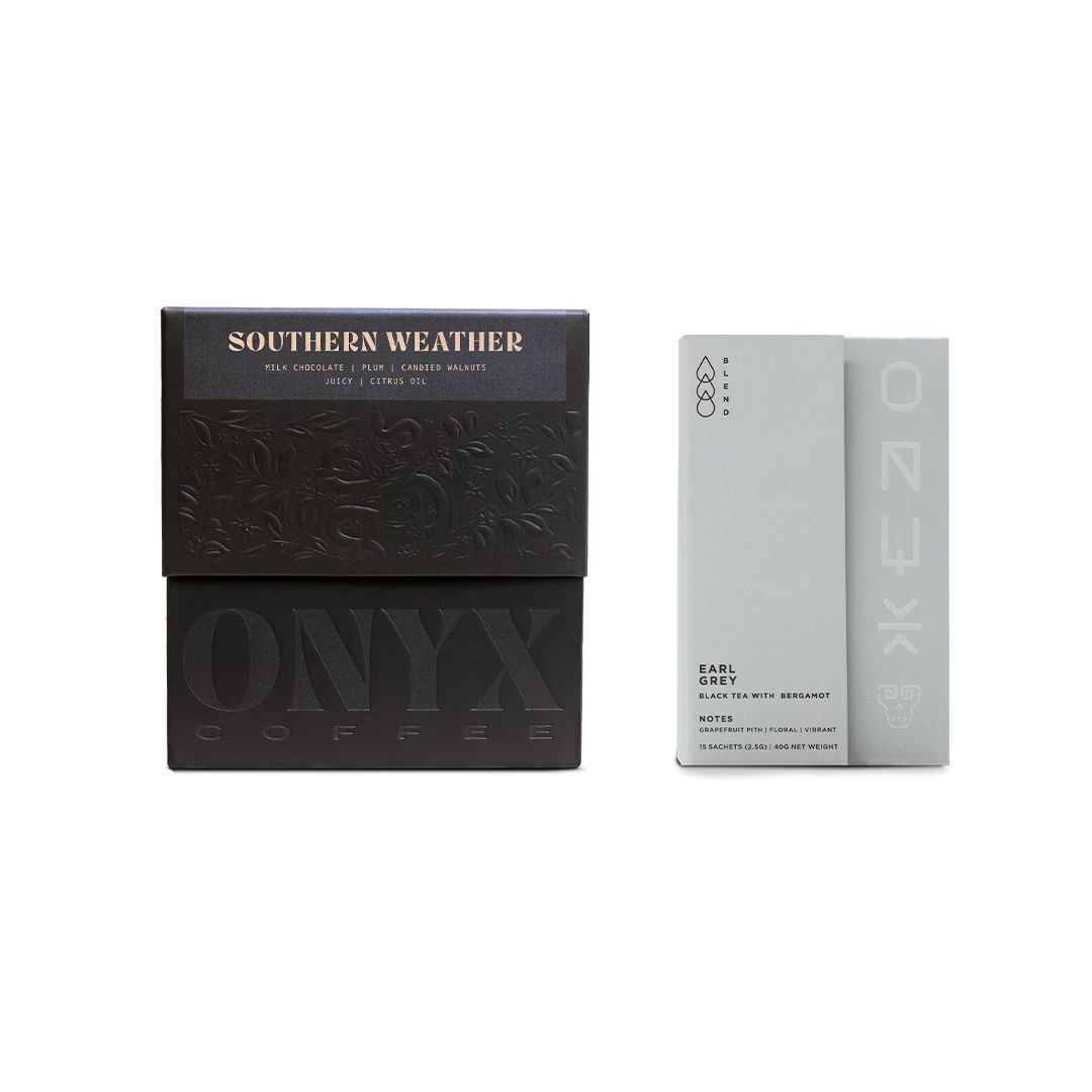 Life is better with healthy routines. Start the day with a cup of Southern Weather and end it by steeping Onyx Earl Grey tea. This box set features what we consider to be one of our staple offerings in both our coffee and our tea. Southern Weather embodies everything we love about specialty coffee and has evolved into a foundational blend. This earl grey is the combination of two high quality ingredients: a whole leaf black tea from southwestern China and bergamot essential oil from southern Italy. Enjoy!