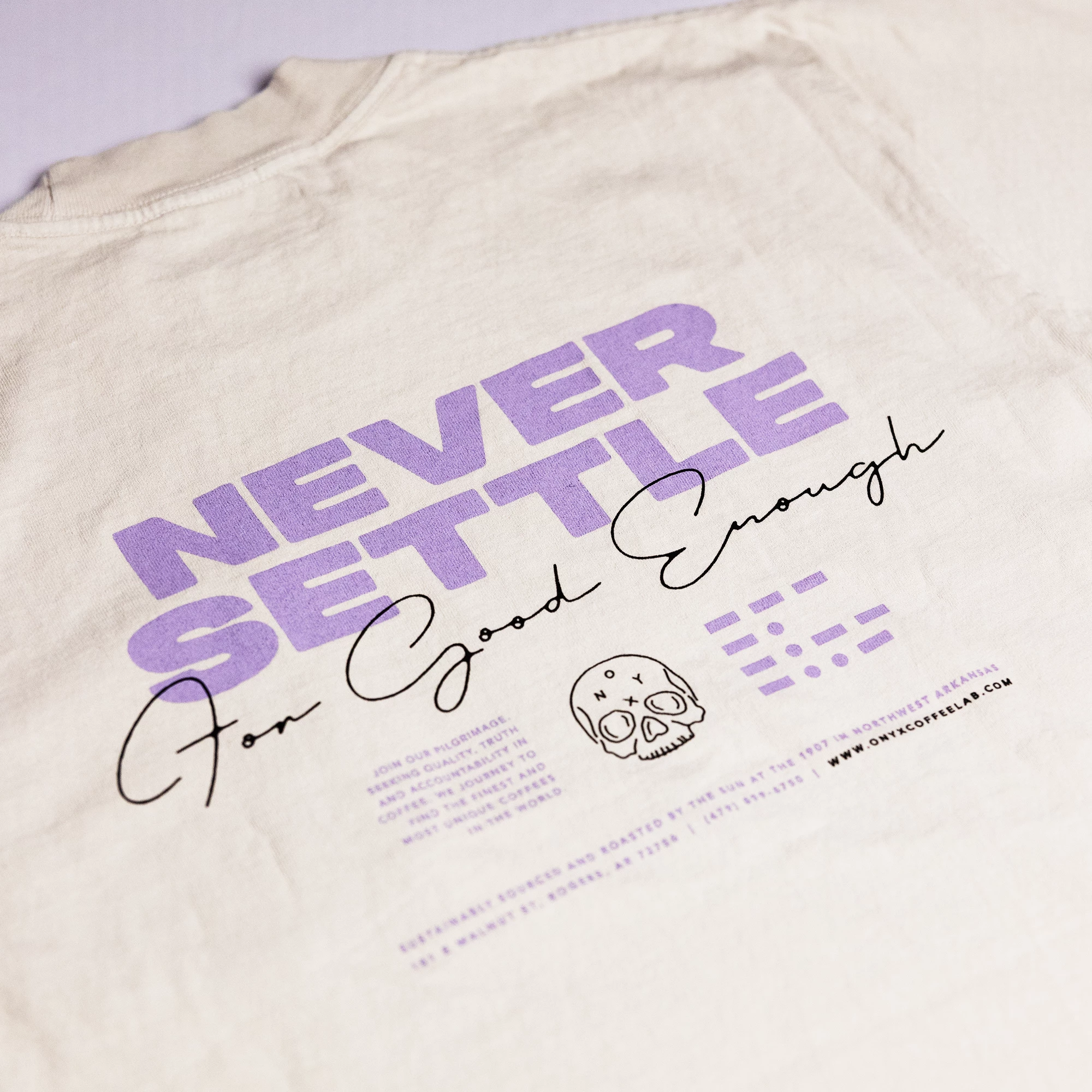 Are you feeling bold? Are you making moves? Well do we have the shirt for you! This type based design features “ONYX” in international morse code along with our call to action alongside our tried & true motto, “never settle for good enough”.