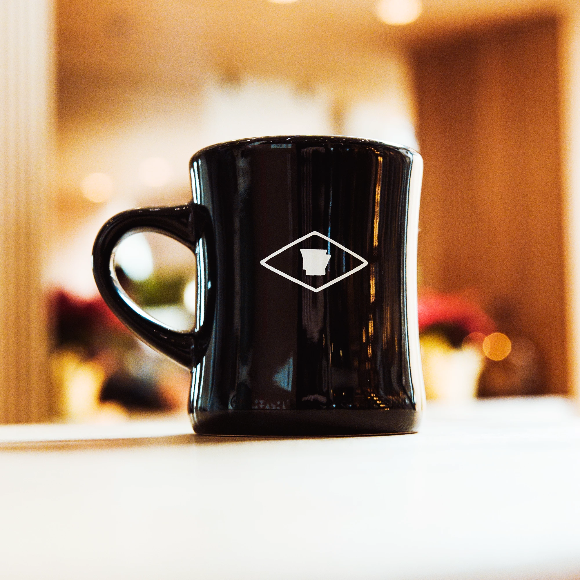 this custom screen printed 12oz ceramic diner mug is printed front & back.