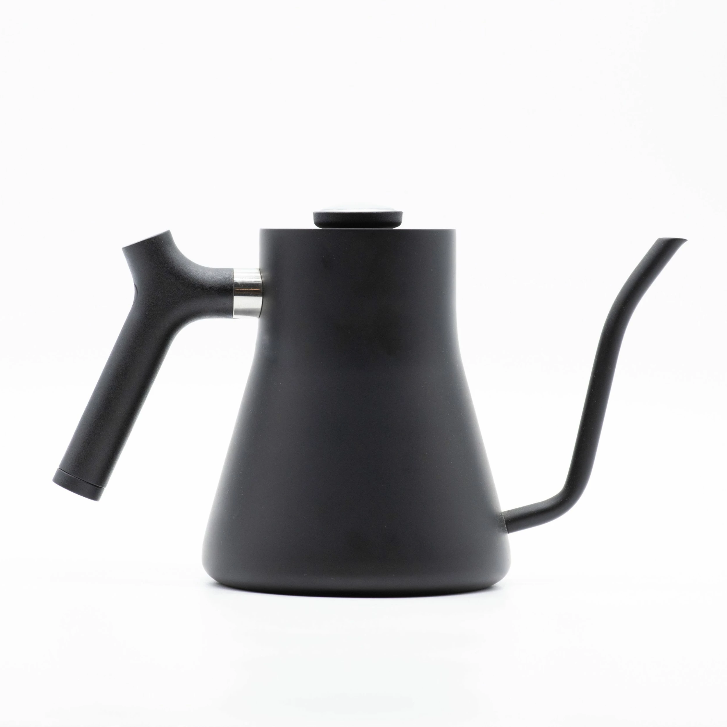 Pro Tips: Do you want a professional-grade kettle that can heat on the stove? This is it. The thermometer shows you the ideal range of temperature for coffee brewing. The spout drops the water vertically which is ideal for manual brewing. The Stagg is probably the best kettle for those who are new to pour-overs but want a piece of equipment to grow with them. The flow control is natural and easy to get used to but performs perfectly on nearly every brew method.Â